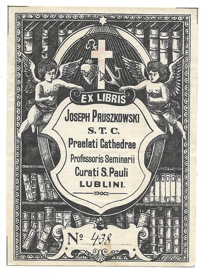 [PRUSZKOWSKI Józef]. Ex libris Joseph Pruszkowski S.T.C., Praelati Cathedrae, Professoris Seminarii Curati S. Pauli Lublini.