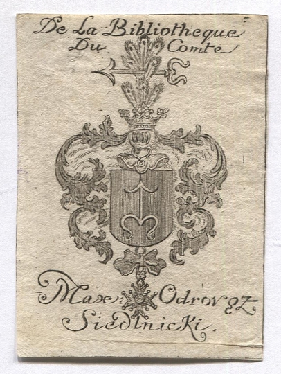 [SIEDLNICKI Maksymilian]. De La Bibliotheque Du Comte Max: Odrovąż Siedlnicki.