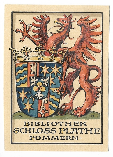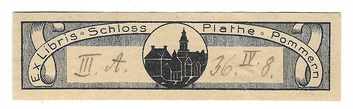 [PŁOTY]. Ex Libris Schloss Plathe Pommern.