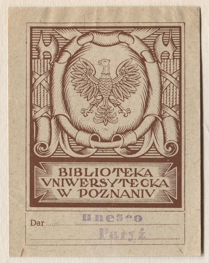 [BIBLIOTEKA Uniwersytetu Poznańskiego]. Biblioteka Uniwersytecka w Poznaniu. Dar UNESCO Paryż.