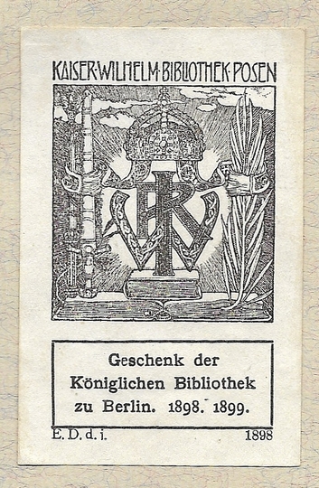 [BIBLIOTEKA Cesarza Wilhelma w Poznaniu]. Kaiser-Wilhelm-Bibliothek, Posen.