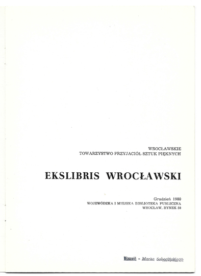 EKSLIBRIS wrocławski. [Katalog wystawy]. Wrocław, XII 1980. 8, s. [16]. brosz.