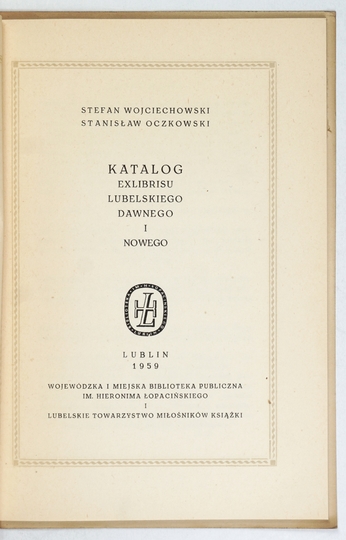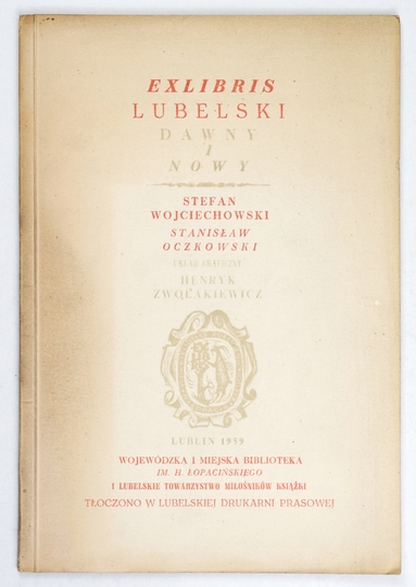 WOJCIECHOWSKI Stefan, OCZKOWSKI Stanisław – Katalog exlibrisu lubelskiego dawnego i nowego. Lublin 1959. Wojew. i Miejska Bibliot. Publ. [...]. 8, s. 23, [4], tabl. 16. brosz.