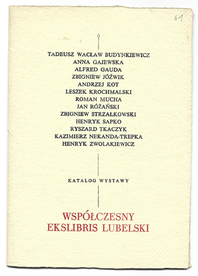 WSPÓŁCZESNY ekslibris lubelski. Katalog wystawy. Lublin, X 1982. 8, s. [39]. brosz.