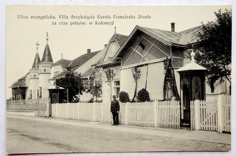 [KOŁOMYJA]. Ulica evangelicka. Villa Arcyksięcia Karola Franciszka Józefa za cras [!] pobytw.[!] w Kołomyi.