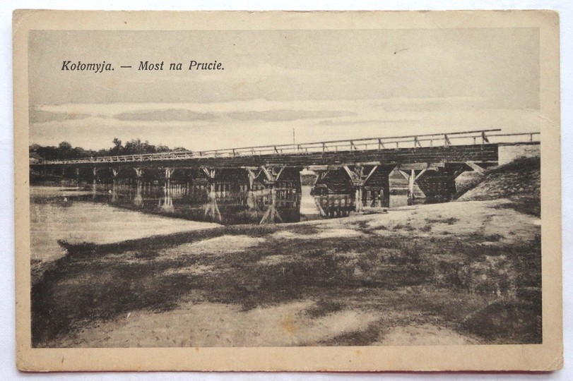 [KOŁOMYJA]. Kołomyja - Kolomea - Kolomija [cyrylicą]. Most na Prucie - Brücke am Prut - Mist na Pruty [cyrylicą].