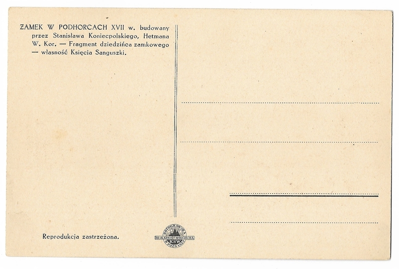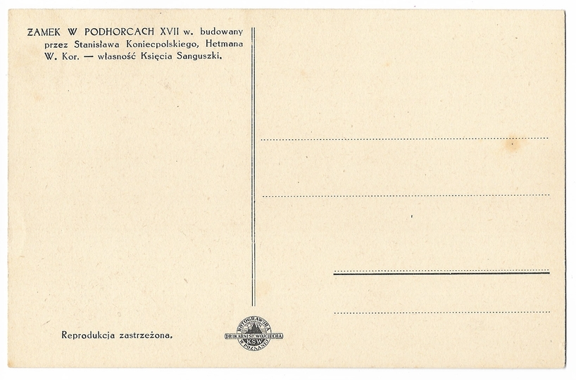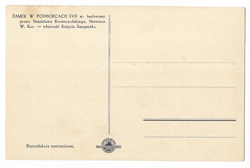 [PODHORCE]. Zamek w Podhorcach XVII w. budowany przez Stanisława Koniecpolskiego [...] - własność Księcia Sanguszki.