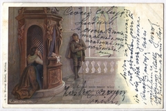 [JUDAIKA]. Wesołych Świąt! Jędrek-Mędrek: Żydzie, żydzi, wnet ja cię nauczę, Jak cię z tyłu, jak cię z przodu Tym smyczkiem wymłócę [...]. (Lucjan Rydel - Betleem polskie).