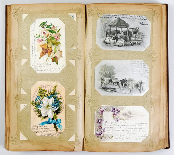 ALBUM secesyjny z 250 dawnymi pocztówkami, w tym 160 sprzed 1905.