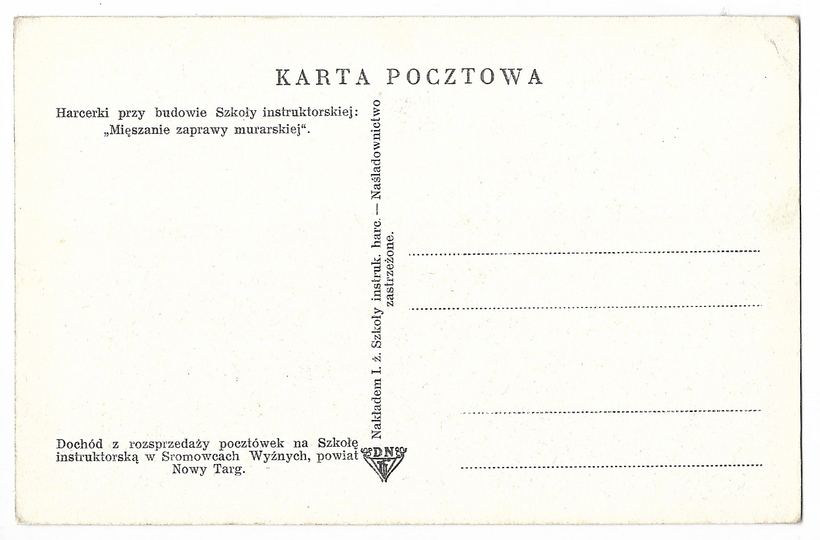[HARCERSTWO]. Harcerki przy budowie Szkoły instruktorskiej: "Mięszanie zaprawy murarskiej".