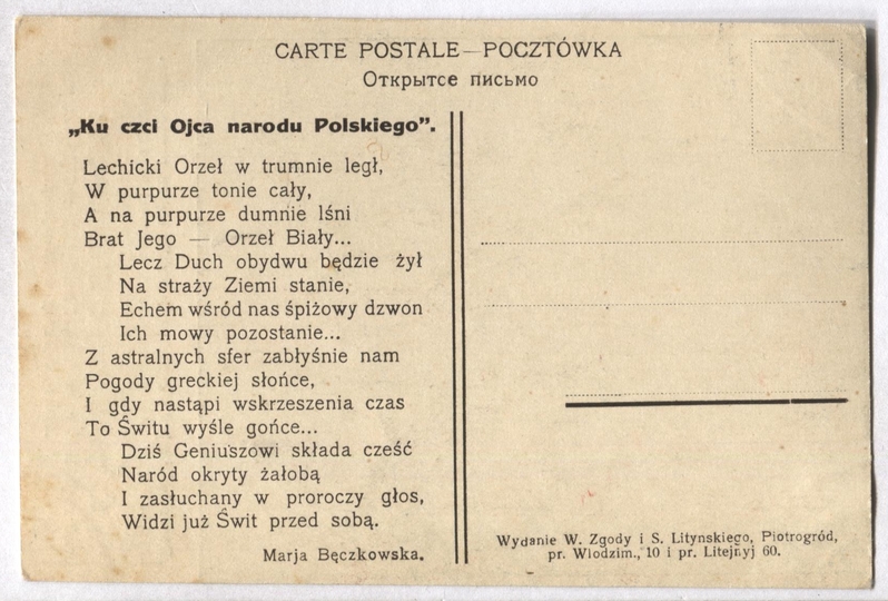[SIENKIEWICZ Henryk]. "Dusza ludzka jest jak ptak [...]". Ś. p. Henryk Sienkiewicz. Ur. 5 maja 1846 r. [...] zm. 15 listopada 1916 r. w Vevey w Szwajcarji.
