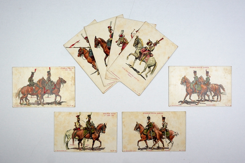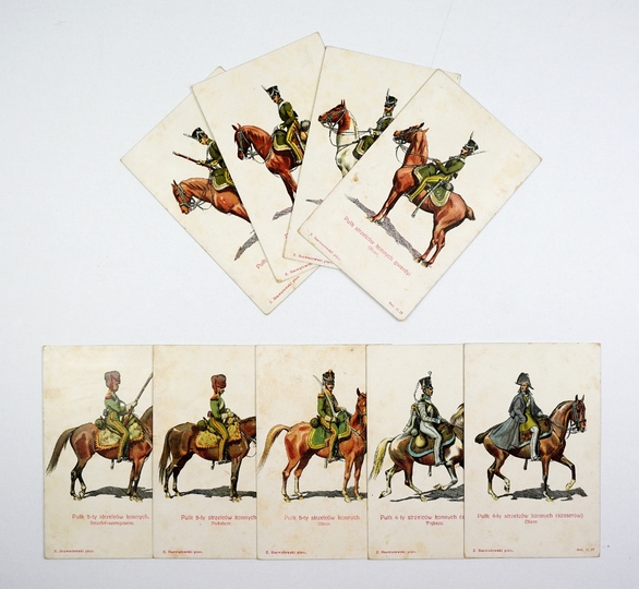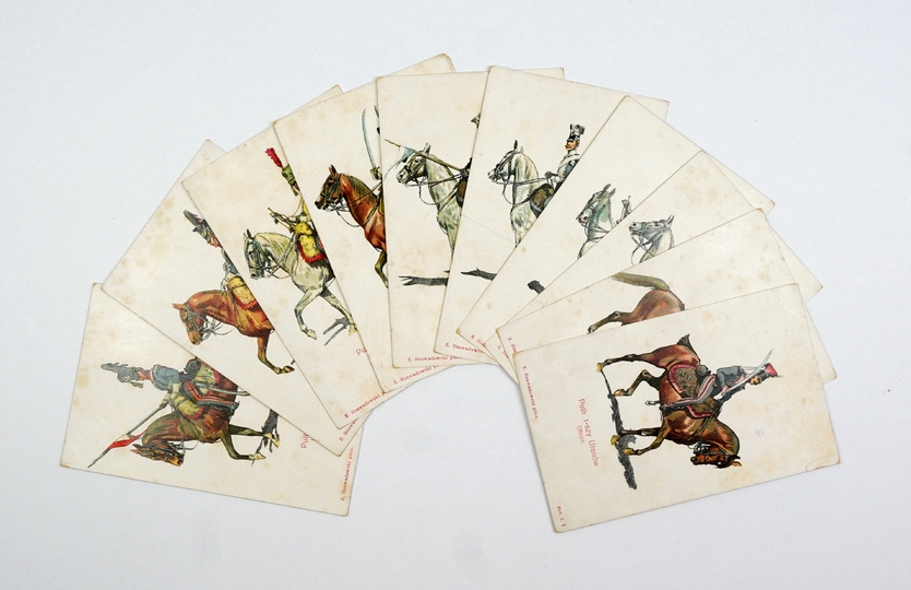 [WOJSKO Polskie - Kawaleria, Z. Rozwadowski 1]. 10 pocztówek serii I mundurów kawalerii Wojska Polskiego malowanych przez Zygmunta Rozwadowskiego.