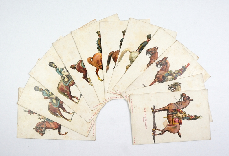 [WOJSKO Polskie - Kawaleria, Z. Rozwadowski 3]. 10 pocztówek serii III mundurów kawalerii Wojska Polskiego malowanych przez Zygmunta Rozwadowskiego.