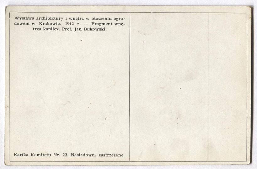 WYSTAWA architektury i wnętrz w otoczeniu ogrodowem w Krakowie. 1912 r. - Fragment wnętrza kaplicy. Proj. Jan Bukowski.