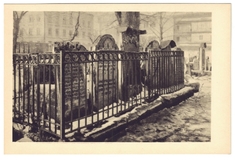 [KRAKÓW]. Grupa sarkofagowych pomników rodziny Mojżesza Isserlesa na Cmentarzu Remuh. Ze zbiorów Żyd. Akad. Koła Mił. Kraj. w Krakowie.