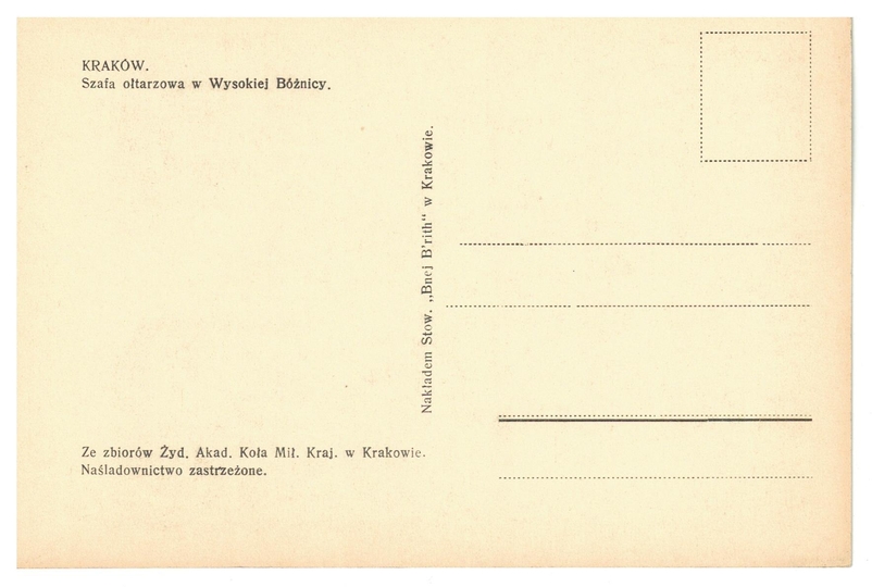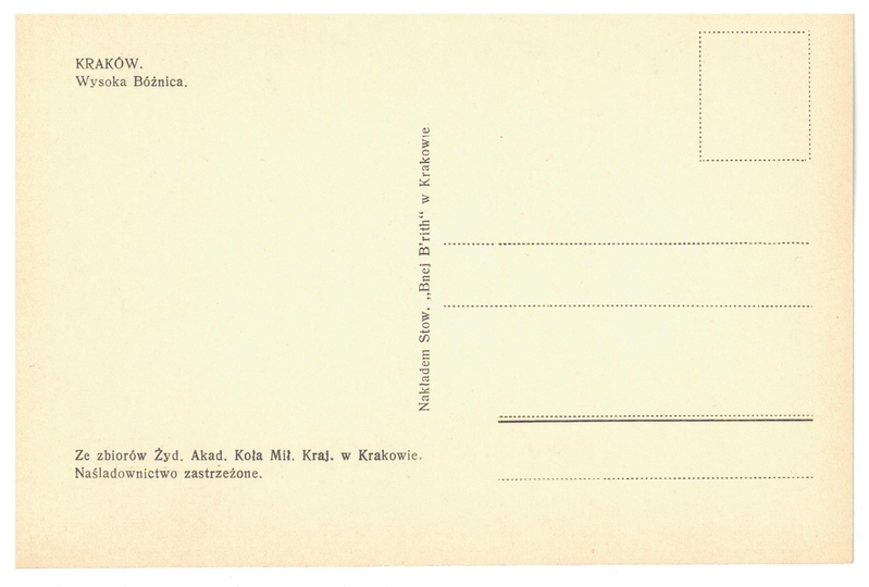 [KRAKÓW]. Wysoka Bóżnica. Ze zbiorów Żyd. Akad. Koła Mił. Kraj. w Krakowie.
