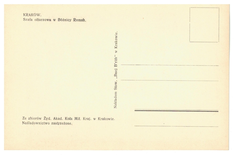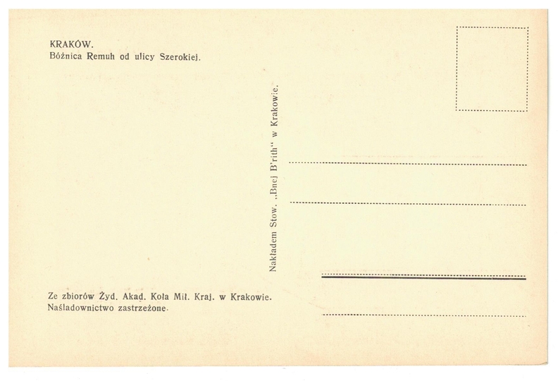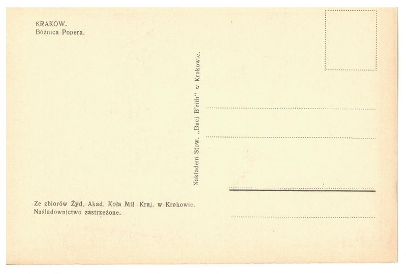 [KRAKÓW]. Bóżnica Popera. Ze zbiorów Żyd. Akad. Koła Mił. Kraj. w Krakowie.