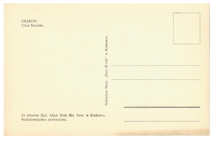 [KRAKÓW]. Ulica Szeroka. Ze zbiorów Żyd. Akad. Koła Mił. Kraj. w Krakowie.