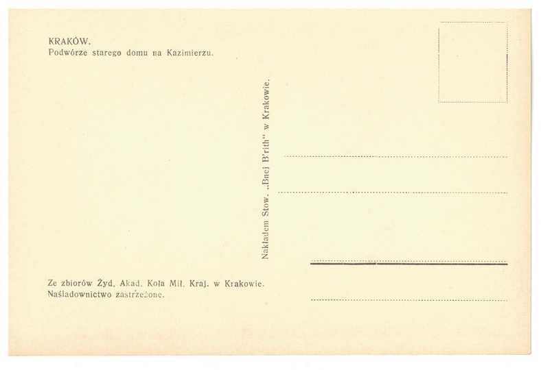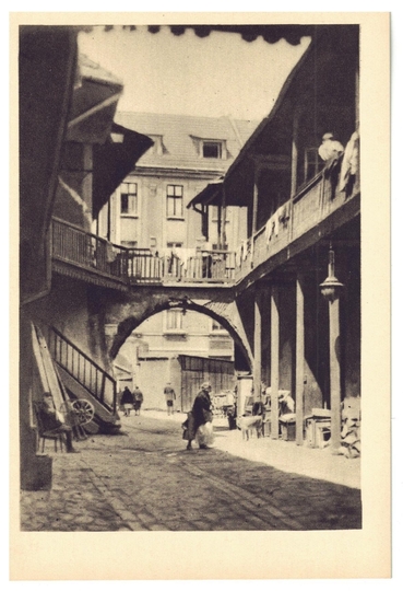 [KRAKÓW]. Podwórze starego domu na Kazimierzu. Ze zbiorów Żyd. Akad. Koła Mił. Kraj. w Krakowie.