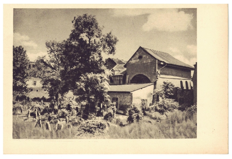 [KRAKÓW]. Bóżnica Remuh od ulicy Szerokiej. Ze zbiorów Żyd. Akad. Koła Mił. Kraj. w Krakowie.