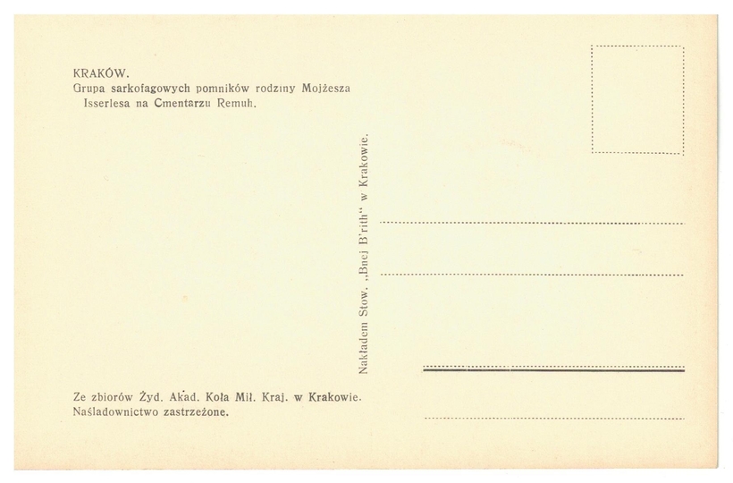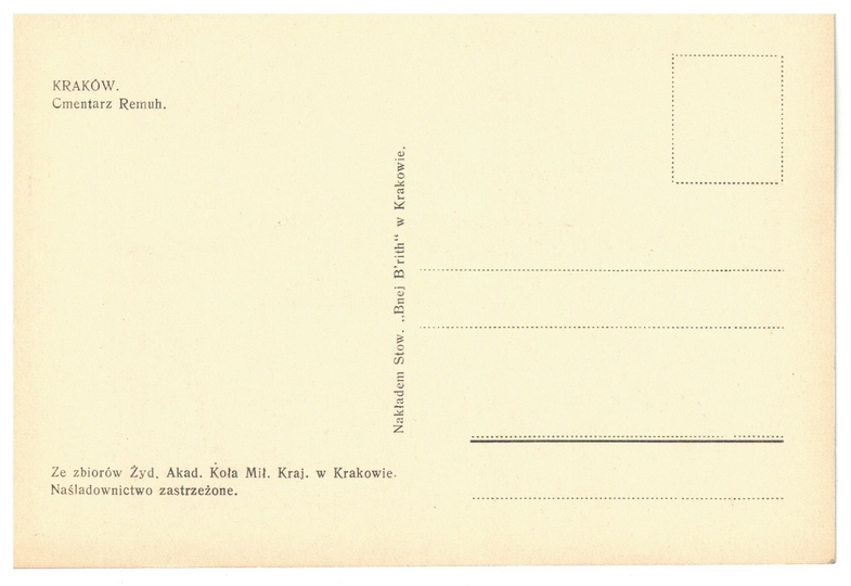 [KRAKÓW]. Cmentarz Remuh. Ze zbiorów Żyd. Akad. Koła Mił. Kraj. w Krakowie.