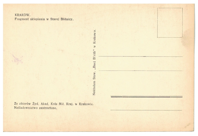 [KRAKÓW]. Fragment sklepienia w Starej Bóżnicy. Ze zbiorów Żyd. Akad. Koła Mił. Kraj. w Krakowie.