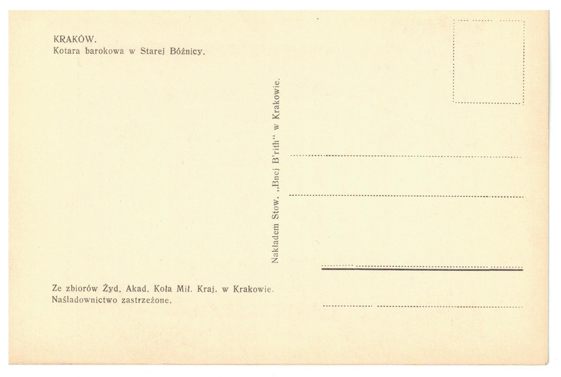 [KRAKÓW]. Kotara Barokowa w Starej Bóżnicy. Ze zbiorów Żyd. Akad. Koła Mił. Kraj. w Krakowie.