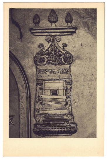 [KRAKÓW]. Skarbona w kruchcie Bóżnicy Remuh. Ze zbiorów Żyd. Akad. Koła Mił. Kraj. w Krakowie.