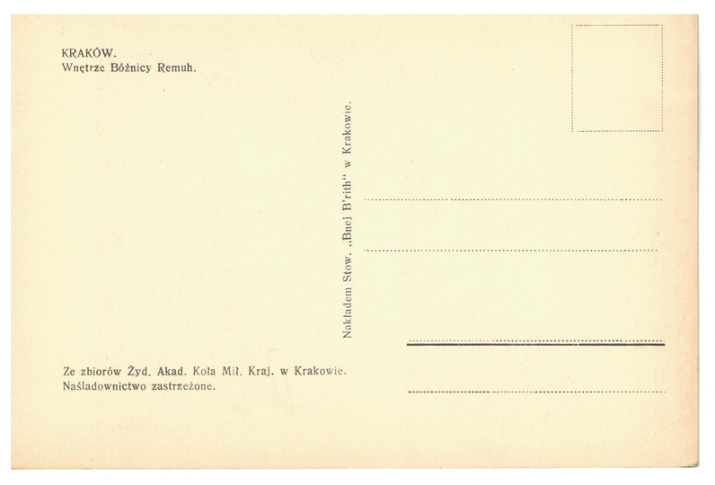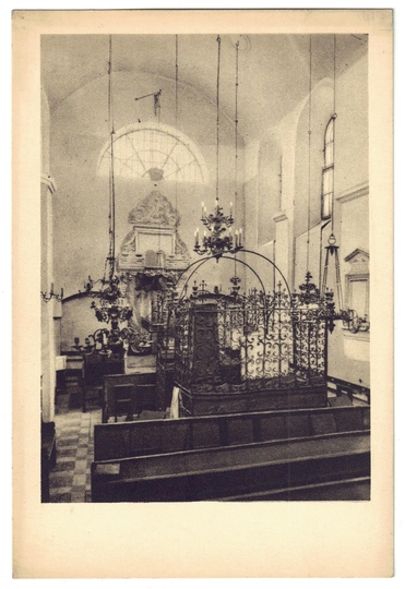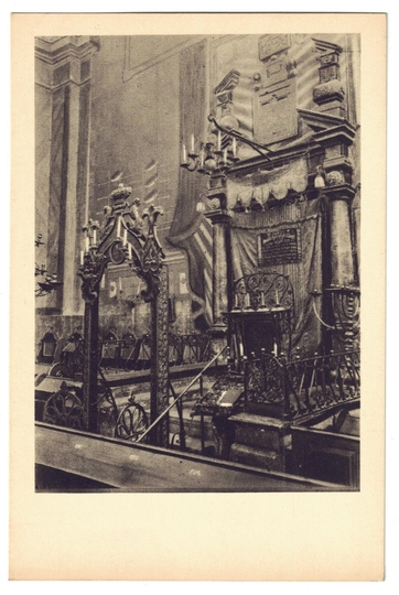[KRAKÓW]. Wnętrze Bóżnicy Remuh. Ze zbiorów Żyd. Akad. Koła Mił. Kraj. w Krakowie.