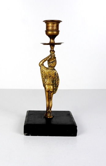 LICHTARZ mosiężny z tancerką, stopa kamienna; przełom XIX/XX w.