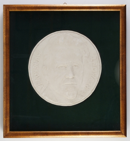 [PROJEKT medalionu]. Gipsowy projekt medalionu na stulecie urodzin W. Reymonta (1867-1967) autorstwa Leona Szacsznajdera, brata żony pisarza.