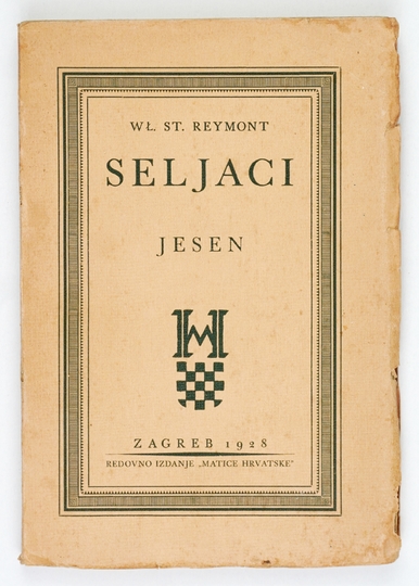REYMONT Władysław St. – Seljaci. Savremeni roman. [T.] 1: Jesen. Preveo Julija Benešić. Zagreb 1928. Izd. "Matice Hrvatske". 8, s. [16], 287, tabl. 1. brosz.