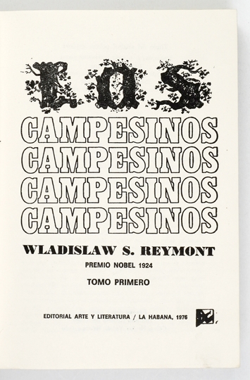 REYMONT Wladislaw S. – Los campesinos. T. 1-2. Traducción R. J. Slaby y Fernando Girbal. La Habana 1976. Editorial Arte y Literatura. 8, s. XI, [9], 575, [4]; 674, [5]. brosz. Biblioteca del Pueblo.