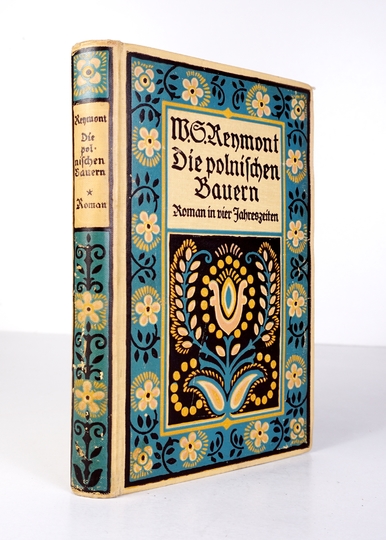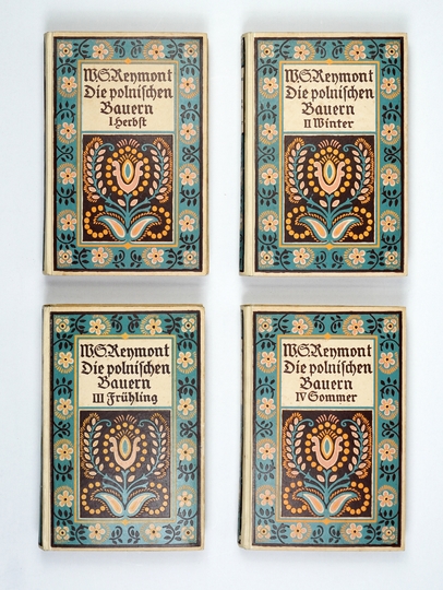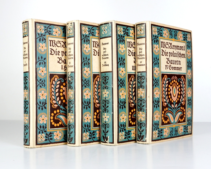 REYMONT W. S. – Die polnischen Bauern. [Bd.] 1-4. Berichtigte Übersetzung aus dem Polnischen von Jean Paul d'Ardeschah [J. P. Kaczkowski]. Jena 1923. E. Diderichs Verlag. 16d, s . [4], XXXII, 321; [4], 351, [1]; [4], 438, [1]; [4], 363, [5]. opr. oryg. ppł., górne obcięcia barwione.