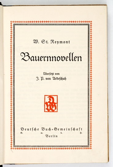 REYMONT W. St. – Bauernnovellen. Übersetzt J. P. von Ardeschah [= J. P. Kaczkowski]. Berlin [1925]. Deutsche Buch-Gemeinschaft. 16d, s. 352, [4]. opr. oryg. psk.