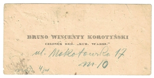 [WIZYTÓWKA]. Bruno Wincenty Korotyński. Członek Red. "Kur. Warsz.".