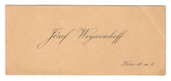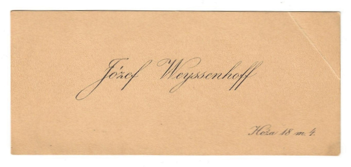 [WIZYTÓWKA]. Józef Weyssenhoff. Hoża 18 m. 4.