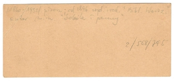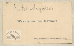 [WIZYTÓWKA]. Wladyslaw St. Reymont.