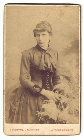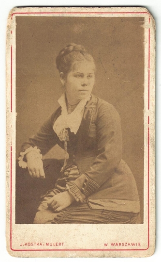 Katarzyna z Rejmentów Jakimowiczowa - siostra pisarza - fotografia portretowa - ujęcie w formacie card de visite - z 1877 (?), wykonana przez atelier J. Kostki i Mulerta w Warszawie.