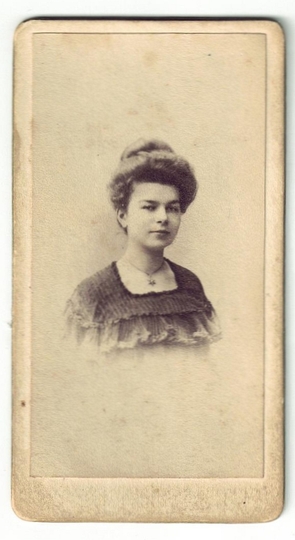 Helena Ludwika z Rejmentów - najmłodsza siostra pisarza - fotografia portretowa - ujęcie w formacie card de visite - z lat 90. XIX w., wykonana przez atelier Karoli & Pusch w Warszawie.