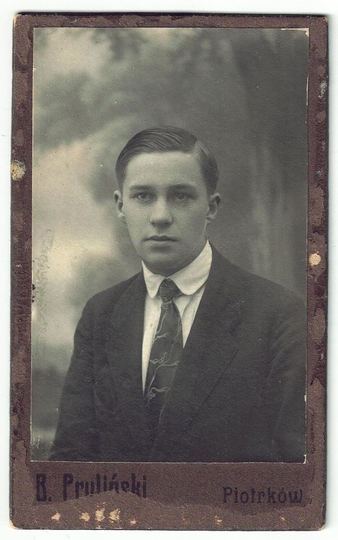 Kamil Konstanty Munkiewicz ? - syn siostry pisarza Kamili - fotografia portretowa - ujęcie w formacie card de visite - z 1. poł. XX w., wykonana przez atelier B. Prulińskiego w Piotrkowie, z dedykacją portretowanego.