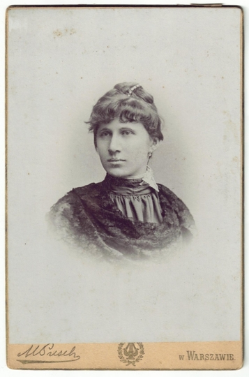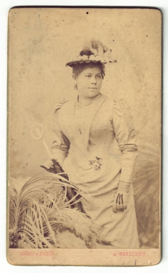 Eleonora Sikorska z Jaworowskich - żona kuzyna pisarza, syna siostry ojca pisarza Marii - fotografia portretowa - ujęcie w formacie card de visite - z lat 80./90. XIX w. wykonana przez atelier M. Puscha w Warszawie.