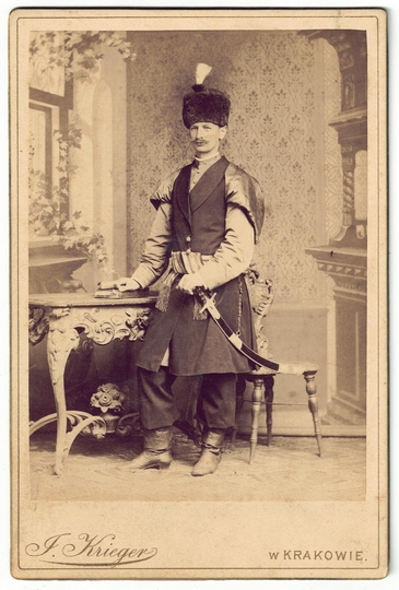 Henryk Sikorski w stroju narodowym - kuzyn pisarza, syn siostry ojca pisarza Marii - fotografia portretowa, ujęcie w formacie gabinetowym - z lat. 80. XIX w. wykonana przez atelier I. Kriegera w Krakowie.