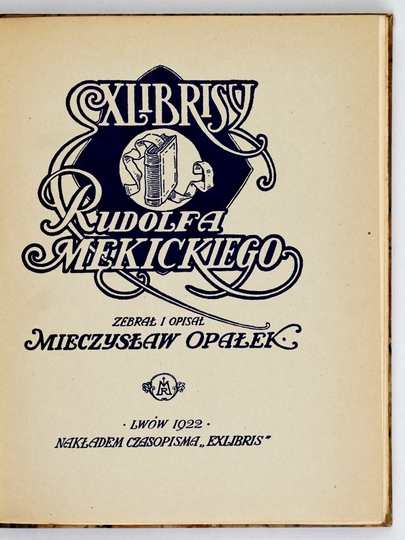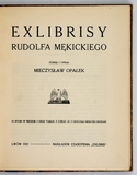 [MĘKICKI Rudolf]. Exlibrisy Rudolfa Mękickiego. Zebrał i opisał Mieczysław Opałek. 10 ryc. w tekście i XXXII tabl., z czego 23 z oryginalnemi exlibrisami. Lwów 1922. Nakł. czasopisma "Exlibris". 8, s. 18, tabl. 32. opr. oryg. kart. z zach. okł. brosz.