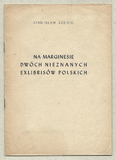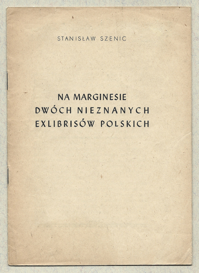 SZENIC Stanisław – Na marginesie dwóch nieznanych ekslibrisów polskich. [Warszawa] 1948. Państw. Pozn. Zakł. Graf. 8, s. 19, [1]. brosz. Odbitka z "Poligrafiki".