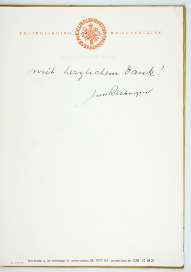 DUNIN-HORKAWICZ Cecylia, HANRATH Joh. J. – Hat exlibris in Polen. Amsterdam-Antwerpen 1969. Exlibriskring der W.B.-Vereniging. 4, s. 56, tabl. 2. brosz.