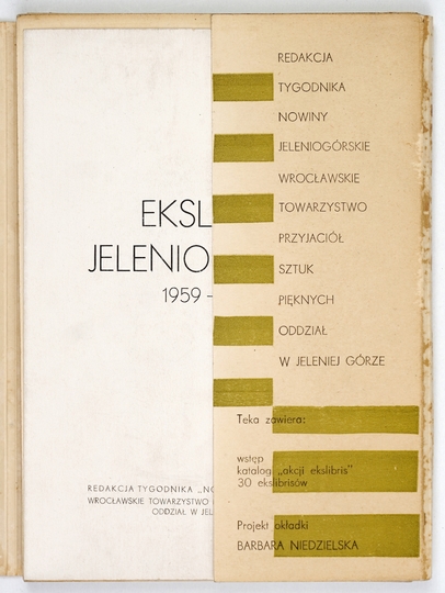 EKSLIBRIS jeleniogórski 1959-1961. Jelenia Góra 1961. Red. tygodnika "Nowiny Jeleniogórskie", Wrocławskie TPSP. 8, s. [7], tabl. 30. oryg. keta kart.