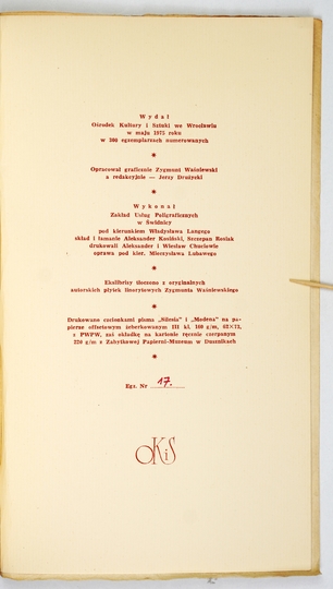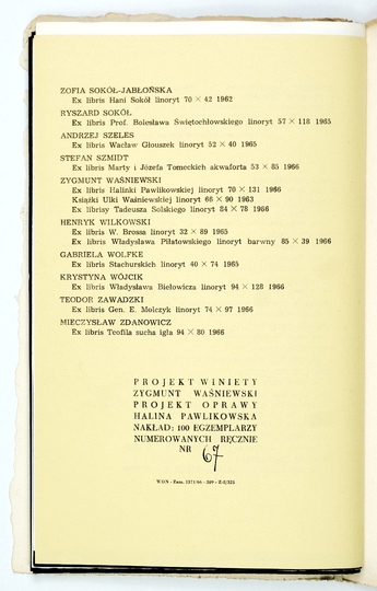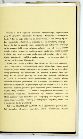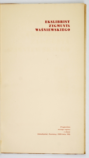 [WAŚNIEWSKI Zygmunt]. Ekslibrisy Zygmunta Waśniewskiego. Wrocław, V 1975. Ośrodek Kultury i Sztuki we Wrocławiu. 4, s. [11], tabl. 12. brosz.