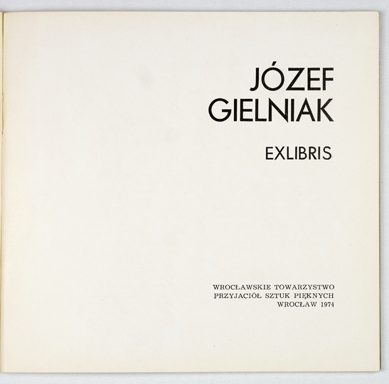 [GIELNIAK Józef]. Józef Gielniak. Exlibris. Wrocław 1974. Wrocławskie Towarzystwo Przyjaciół Sztuk Pięknych. 16d, s. [13], tabl. 15. brosz.