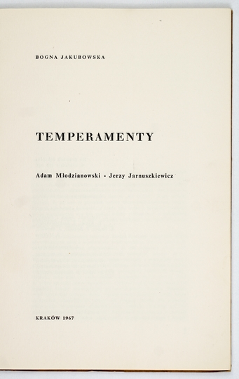 JAKUBOWSKA Bogna – Temperamenty. Adam Młodzianowski - Jerzy Jarnuszkiewicz. Kraków 1967. A. Brosz. 8, s. 7, [1], tabl. 16. brosz.